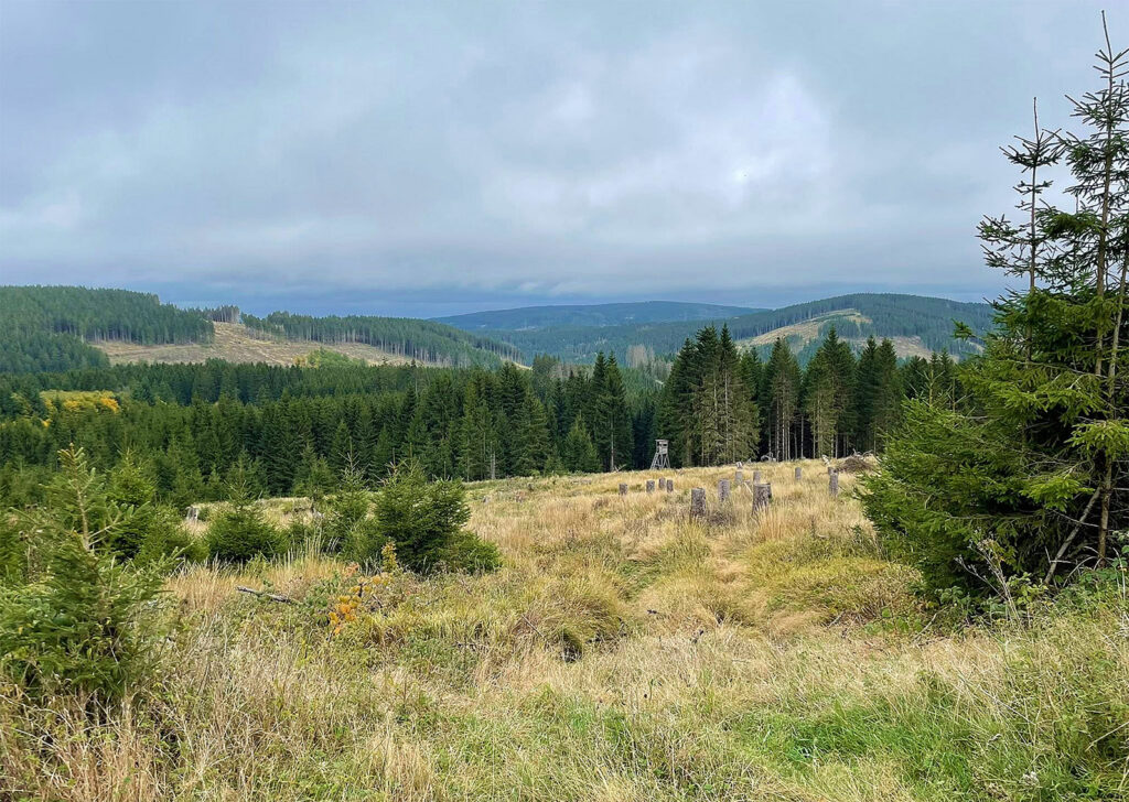 Bei unserer zweitägigen Begehung  rund um den Dreiherrenstein und das Morastgebiet im Thüringer Wald – also im unmittelbaren Lebensraum des Neustädter Wolfsrudels – wurden wir Zeugen einer Waldzerstörung, die weit über das hinausgeht, was als „Borkenkäfermanagement“ gerechtfertigt werden kann. Wir beobachteten und dokumentierten: