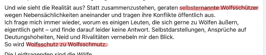 „selbsternannte Wolfsschützer“ – ist wohl die klassische Projektion…