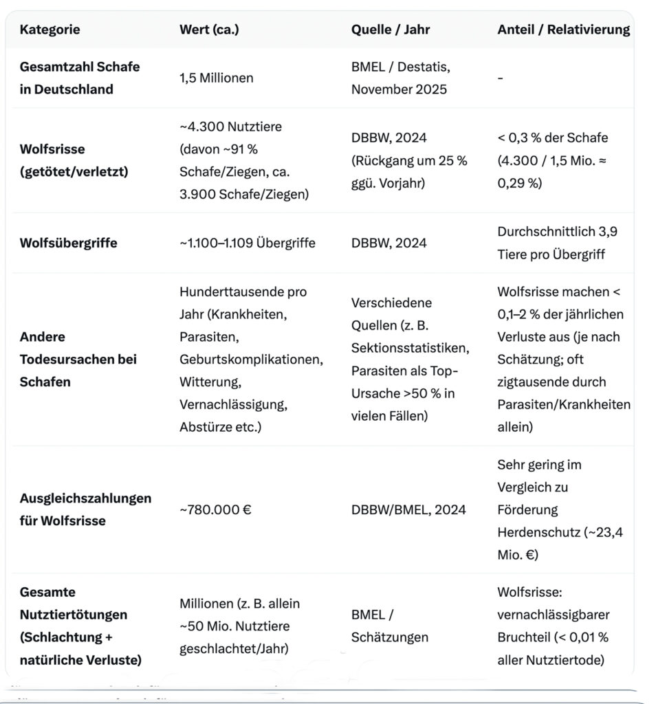 Die Zahlen sprechen eine klare Sprache: Wolfsrisse sind eine Randnotiz im Vergleich zu echten Problemen in der Weidetierhaltung.