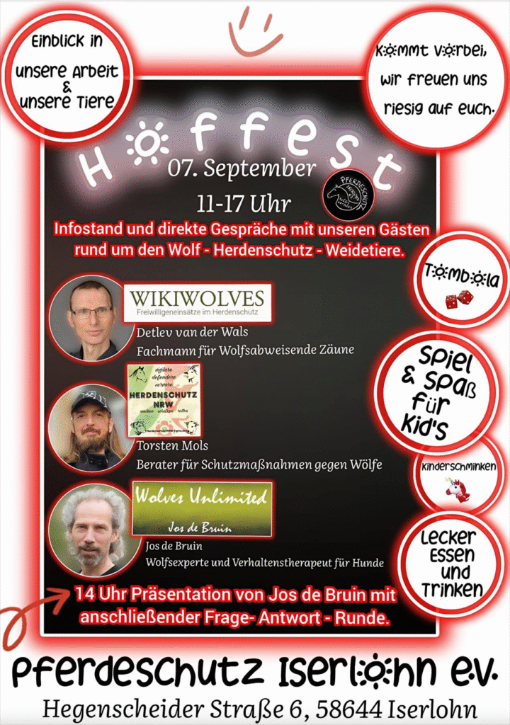 - NRW: Illegaler Abschuss und Verrat gefährden weiter Wölfe in Schermbeck (29. August 2025): Wir decken auf, wie illegale Tötungen – inklusive Köderfallen mit Reh-Kadavern und Treiben auf die A3 – das Rudel auslöschen. Innerhalb der Szene laufen Allianzen mit Wolfsgegnern wie Torsten M., die in Social Media als „Kompromiss“ verkauft werden. Mitglieder von Zaunbau-Initiativen leaken Standortdaten und normalisieren Abschüsse, was den Verlust von Glorias Familie begünstigt hat. Der Fall „Kurti“ zeigt: Solche Kompromisse lösen Konflikte nicht, sondern schüren Hass. Quelle: https://wolfsschutz-deutschland.de/2025/08/29/nrw-illegaler-abschuss-und-verrat-gefaehrden-weiter-woelfe-in-schermbeck/