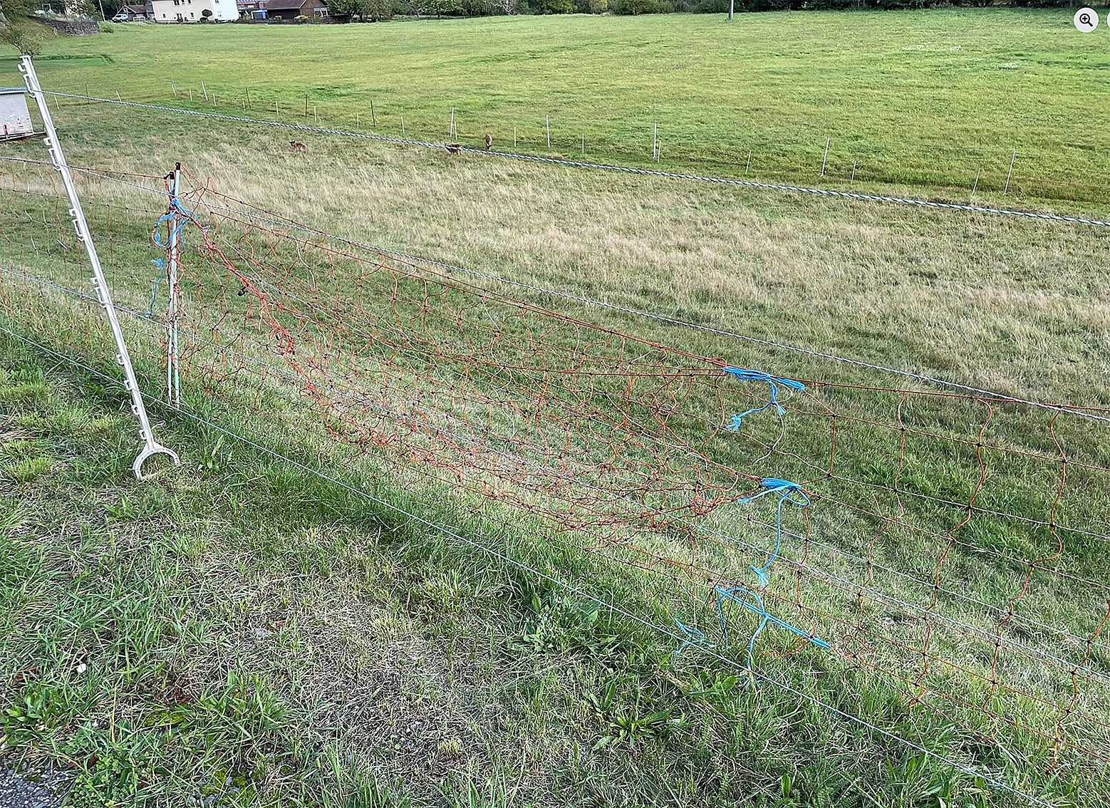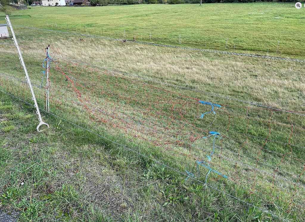 Wolfsabweisendes Netz in einer Hähe von 1,10 Metern, was aber wenig hilft, wenn keine Spannung darauf ist.