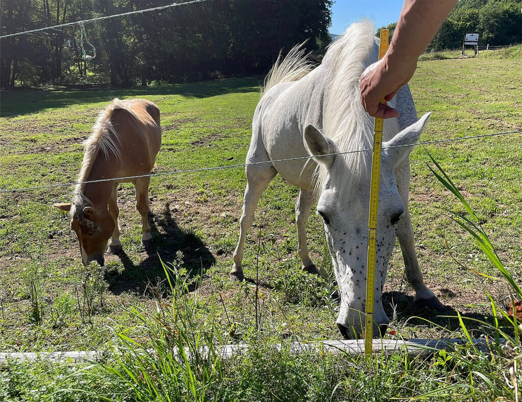 Auf den Litzen waren am 19.09.25 8.000 Volt Spannung. Allerdings beträgt der Abstand zum Boden hier 60 Zentimeter, was weder Hund noch Wolf daran hindert trotz Spannung auf die Weide zu gelangen. Es gab bislang dort überhaupt keinen Angriff auf Pferde. Seit einem Schafs- und Ziegenriss macht eine Pferdehalterin allerdings dort Stimmung gegen Wölfe und sie schürt Panik. Angeblich ist sogar eine Veranstaltung mit dem Antiwolfspropagandisten Dr. W. aus dem hessischen Gelnhausen geplant. Dabei sind Pferde viel mehr durch Wolfsripper gefährdet, als durch Wölfe oder Hunde. https://wolfsschutz-deutschland.de/2021/01/14/angriffe-auf-pferde-280-irren-rippertaten-stehen-nur-16-wolfsangriffe-gegenueber-abschussforderungen-von-pferdehaltern-unverhaeltnismaessig/